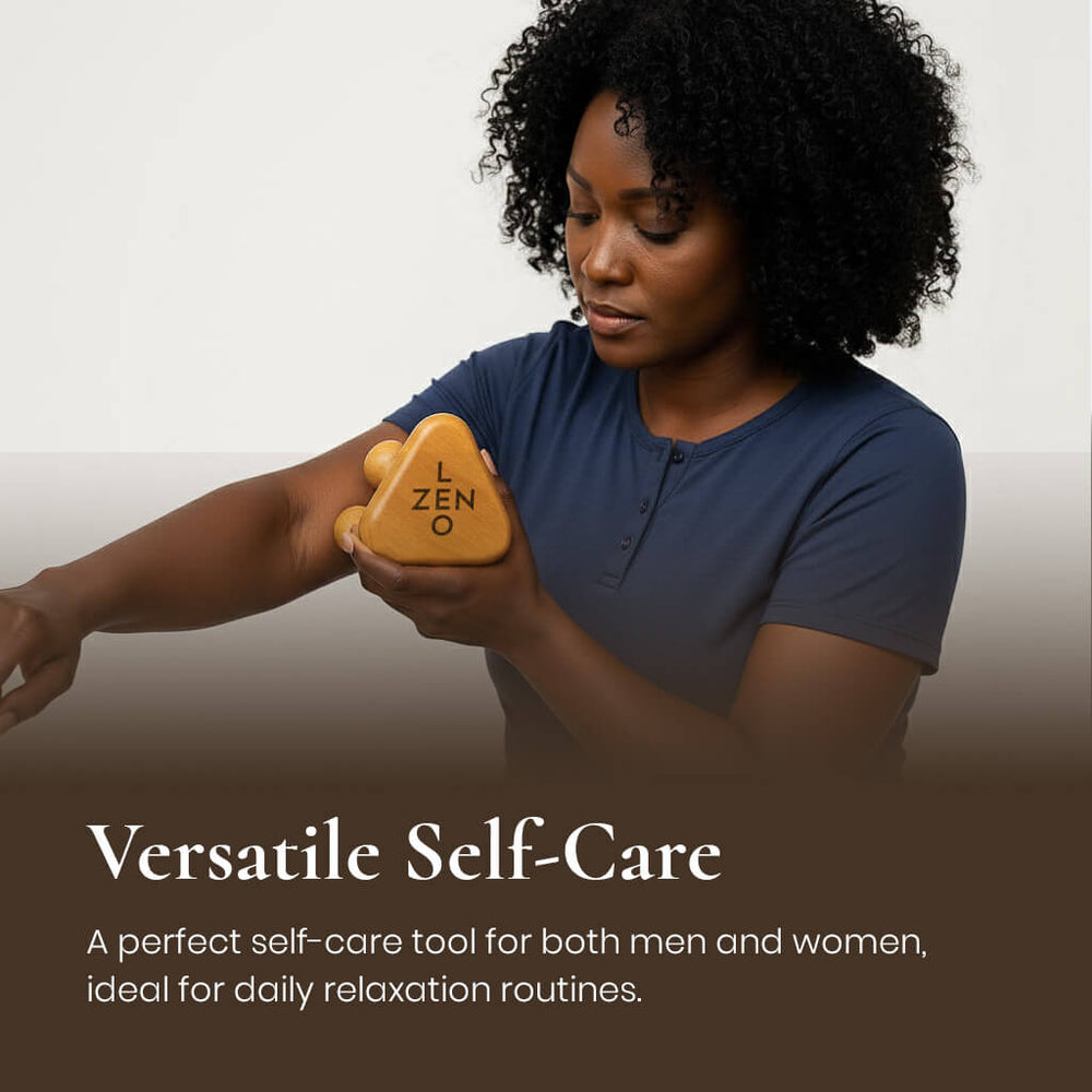 The ZenLeo Triangle Wood Massager is thoughtfully crafted to help you unwind, restore, and recharge. Designed with smooth contours and detachable wooden balls, this ergonomic tool fits comfortably in your hand, gliding effortlessly across your body to release tension and stimulate circulation.